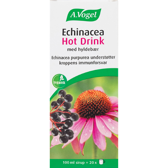 Echinacea hot drink er en velsmagende kombination af hyldebær og rød solhat. Mange har prøvet at få serveret et krus hyldebærsaft til at holde snuen fra døren vinteren igennem. Her bliver den gamle kending kombineret med den geniale røde solhat også kendt som echinacea purpurea. Et genialt makkerpar til at give immunsystemet et kærligt puf i ryggen