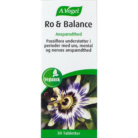 Ro & Balance er et kosttilskud af passionsblomst, samt de velkendte, rolige planter citronmelisse og lægebaldrian.