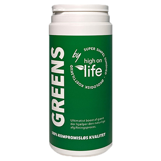 Jeg smider også mit kosttilskud Greens by High on Life med i denne pakke. Dette kan med fordel blandes i dine grønne smoothies og indgår også i nogle enkelte opskrifter i bogen High on Smoothies. Jeg har blandet en masse forskellige græssorter med næringsrige planter, som findes både over og under havoverfladen. Kosttilskuddet er 100% økologisk.