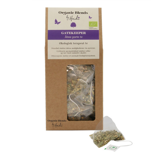Gatekeeper by Heidi er en 100% økologisk urtete med fennikel, marietidsel, gyldenris og pebermynte, der har til formål at støtte nyren og fordøjelsen. Fennikel støtter detox mulighederne via nyrerne, hvor gyldenris og marietidsel støtter celler og væv mod oxidative skader og pebermynte støtter et normalt fordøjelsessystem.