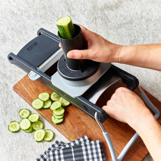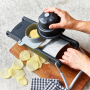 Den justerbare skærebredde og skiveindstilling giver dig fuld kontrol over hvert snit, og kan indstilles i tykkelser fra 0-10 mm. Uanset om du vil skaber imponerende serveringer eller ønsker præcise skiver til din yndlingsret, er de Buyers mandolinjern det uundværlige værktøj til enhver ambitiøs madentusiast. Når du er færdig med mandolinjernet, kan du komme den i opvaskemaskinen.