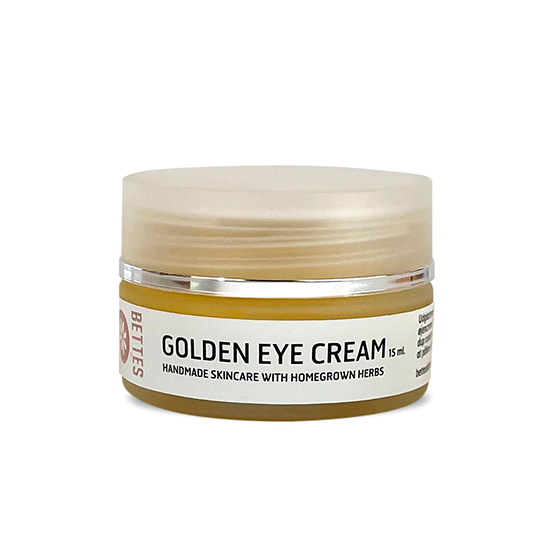 Golden Eye Cream fra Bettes Skincare er en naturlig øjencreme lavet af økologiske ingredienser, der er genial til at pleje, lysne og udglatte omgivelserne omkring øjnene. Cremen indeholder bl.a. olier fra blommekerner, tranebær og broccolifrø, der er rige på A-vitaminer.