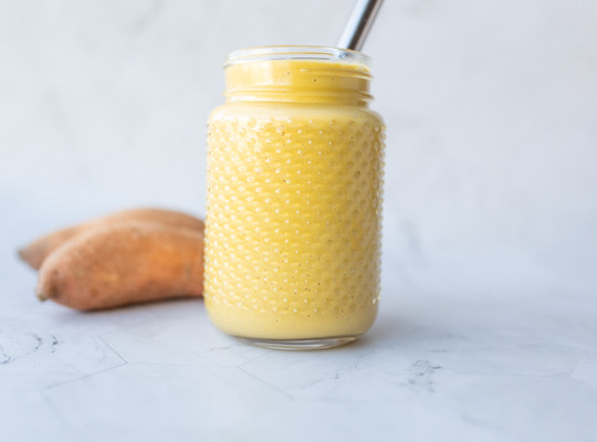 En skøn smoothie med smag af sød kartoffel, der giver smoothien en cremet konsistens. En smoothie, der er designet til at understøtte en flot glød indefra. Sød kartoffel har f.eks. et højt indhold af betacaroten, der er lettere optagelig, når det er tilberedt og spises sammen med noget fedtholdigt, som f.eks. mandelsmør eller peanutbutter. Kinakål er guf for de gode tarmbakterier, der gengælder med en sundere hud indefra. Mandelsmør indeholder store mængder E-vitamin. Så hvis du vil forkæle din hud, så kast dig over denne smoothie.