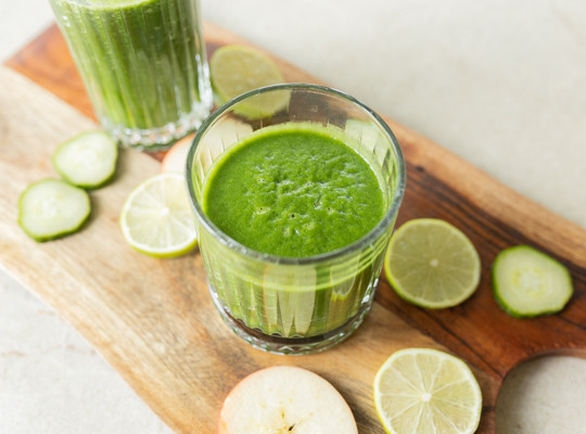 Denne greenie med spinat, agurk og æble er rig på vitaminer, antioxidanter og fibre. Du får over 250 gram frugt og grønt i denne ene smoothie og samtidig smager den himmelsk, så det er bare at gå i krig. Opskriften er udviklet af certificeret kostvejelder, Rie Laursen.