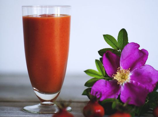 Denne smoothie indeholder betragtelige mængder hyben, som i vor tid burde kaldes for ’superfood’. Hyben er særdeles undervurderede og oversete. De er noget nær det sundeste, vi kan finde i den danske natur. De indeholder især store mængder A- og C-vitamin.Faktisk indeholder hyben 21 gange så meget A-vitamin og 6 gange så meget C-vitamin som f.eks. broccoli.