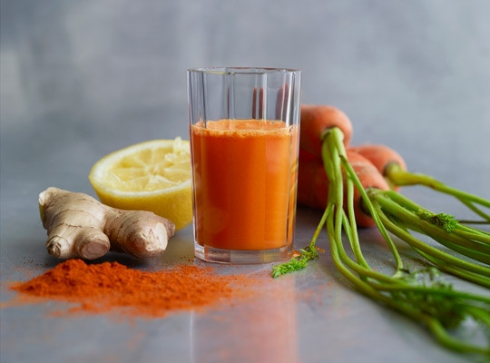 Gulerodsjuice med gurkemeje og persillerod