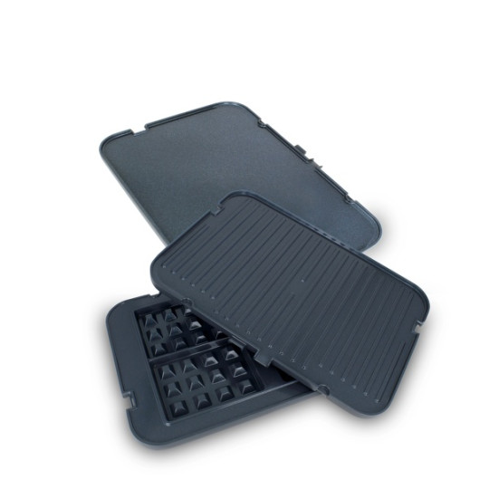 1 x Bordgrill2 x Glatte plader2 x Grillplader2 x Vaffelplader1 x Stegetermomenter1 x Manual på engelsk