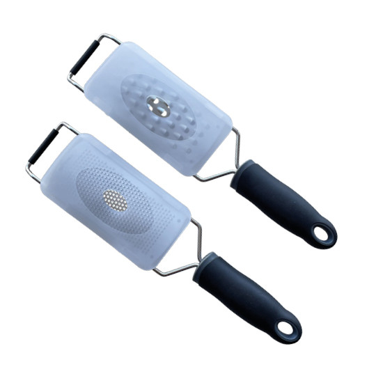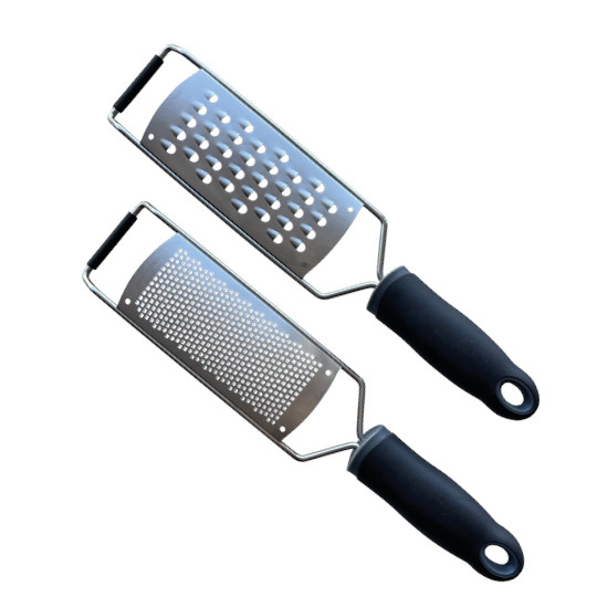 Rivejernene er udstyret med soft-grip håndtag, som gør dem behagelige at holde ved. For at sikre bedre stabilitet under rivningen er der en gummifod for enden af rivejernene. Begge rivejern har hver sine egenskaber, og de vil uden tvivl blive et af dine foretrukkende redskaber i køkkenet.