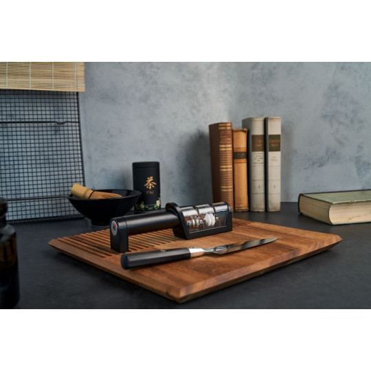 Knivskærper med keramiske hjul fra Miyabi gør dine knive skarpe og fine igen.
