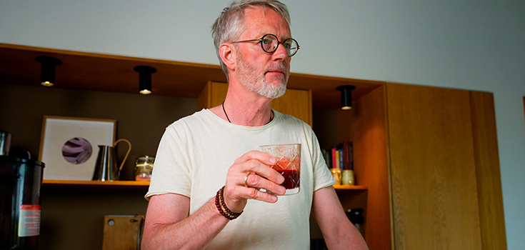 Jørgens Vitamix kører 6-7 dage i ugen og juicemaskinen kører mindst 3 dage i ugen. Smoothies holder ham mæt og hjælper ham til et stabilt blodsukker hele dagen igennem uden sukkertrang. Ugens smoothies bliver planlagt hver lørdag, hvor Jørgen laver en ugeplan ud fra Mads Bos bøger samt inspiration fra nyhedsbrevet. ”Jeg har brug for variation, så jeg laver en ny smoothie hver dag. Til gengæld spiser jeg den jo både til morgenmad og frokost. Smoothiebøgerne hjælper mig til at komme hele vejen igennem grøntsagshylden – og så sidder farve, smag og konsistens altid lige i skabet. Juice freestyler jeg mere med”.