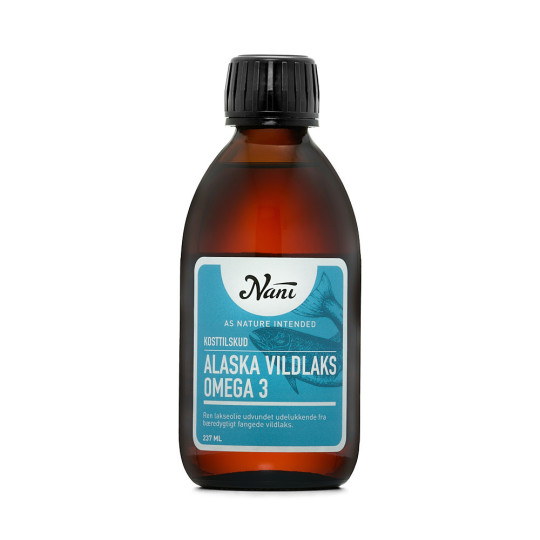 Når du vælger Nanis koldpressede vildlaksolie, er du sikret en fiskeolie af højeste kvalitet med et typisk totoxtal på kun 1-3. Olien er hverken opvarmet eller opkoncentreret, hvorfor olien er, som naturen har skabt den. Med sin naturlige omega-3 fedtsyrebalance og på sin oprindelige triglyceridform som i frisk fisk. Fiskeolien fra Nani indeholder de essentielle omega 3 fedtsyrer EPA og DHA, der bidrager til en normal hjerne- og hjertefunktion, samt vedligeholdelse af et normalt syn.