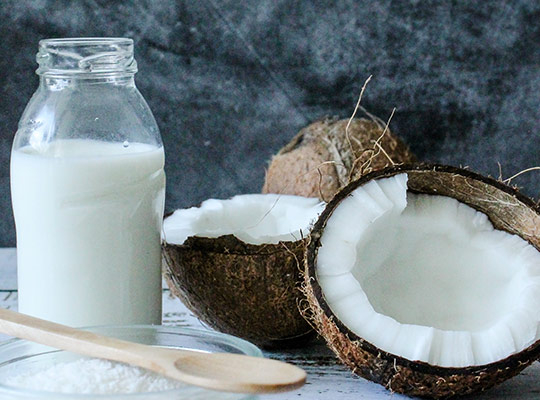 Kokosmælk er en sød, mælkeagtig, hvid og lidt tyk drik, som er lavet af kødet fra modne kokosnødder. Den kan købes på dåse og nu også på karton mange steder. Gå efter de økologiske versioner og vælg dem med det laveste vandindhold. Vi synes den eksotiske smag er fantastisk sammen med lime og søde desserter på blenderen, hvor der f.eks. er brugt mango eller banan. Kokosmælk hjælper også konsistensen til at blive en smule tykkere, hvilket fungere godt i is og smoothies, der spises med ske.