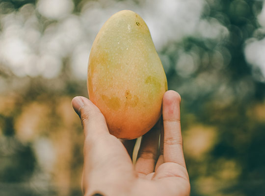 Mango er en kærkommen ingrediens i vores smoothies. På samme måde som bananen byder den ind med den cremede og fede konsistens, når den blendes i smoothies. Mango har en frisk, sød og mild smag, som har potentialet til rent smagsmæssigt at camouflere smagen af bitre grøntsager. Mango har et højt indhold af B- og C-vitamin, og af mineraler kan nævnes fosfor, jern og kalcium.