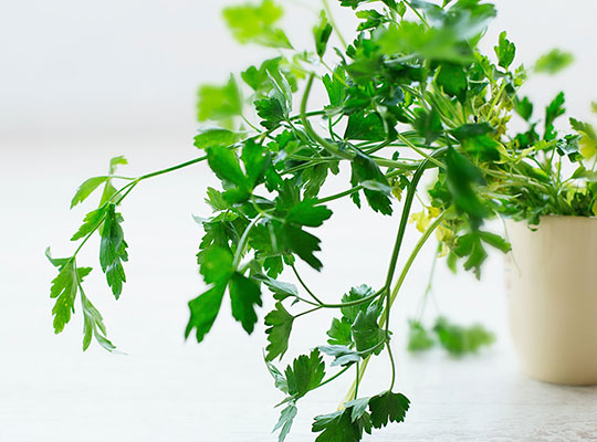 Før Mads Bo blev juicemand havde han aldrig rigtig haft et forhold til persille. Det blev mest til pynt på tallerkenen. I dag er sagen en ganske anden. Nu bruger han flittigt den skønne krydderurt i sine opskrifter. Og af en god grund. Den er nemlig super sund og vil dig kun det bedste. Persille er som alle andre krydderurter rig på en lang række vitaminer, mineraler og antioxidanter. Persille indeholder for eksempel beta-karoten. Det er forgangsmand til A-vitamin, som har betydning din hud, dine øjne og dine slimhinder. Persille indholder også B-, E-, K- og C-vitamin. Den kan bruges på niveau med alle andre bladgrøntsager og er mindst lige så potent. Hvis ikke mere. Om du bruger krus- eller bredbladet persille har ingen praktisk eller sundhedsmæssig betydning. Køb det som er mest mørkegrønt og brug endelig også stilken i både juice og smoothies.