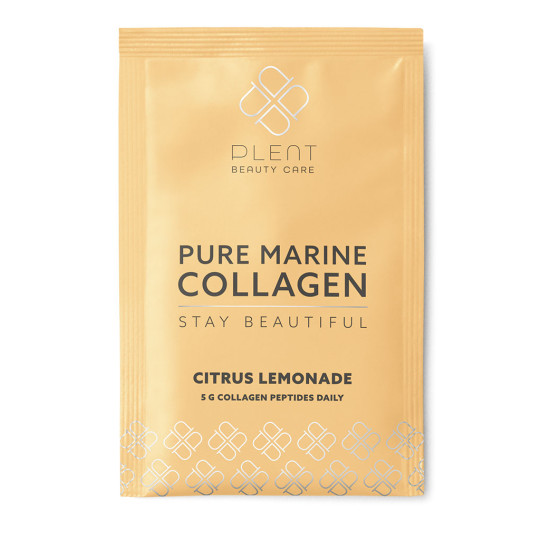 Få dit daglige indtag af Marine Collagen nemt og hurtigt med små dagsdoser fra Plent med frisk smag af lemon.