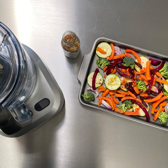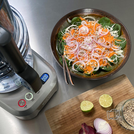 Snit hurtigt dine grøntsager til din salat på en foodprocessor fra Sage.