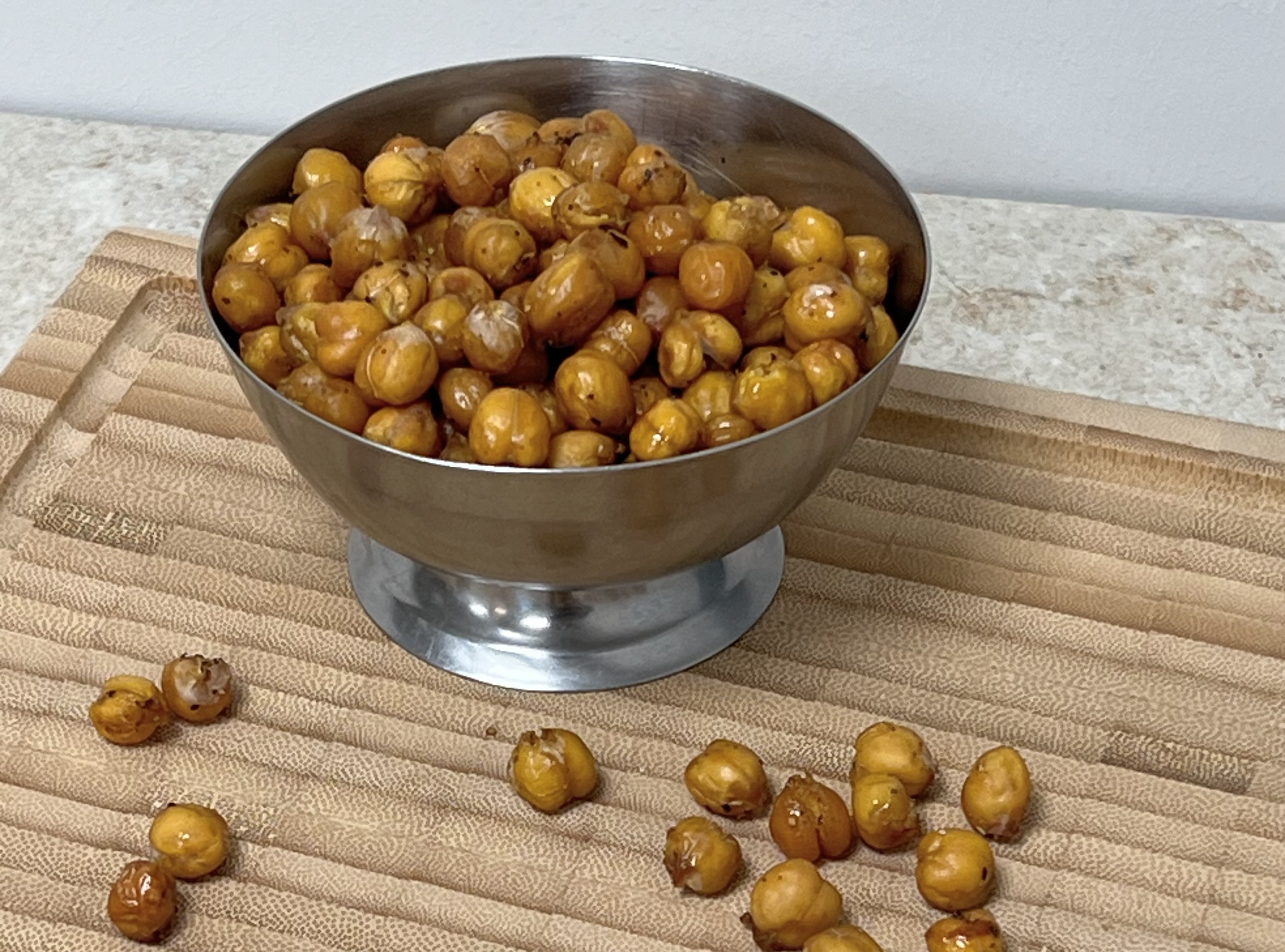 De sprøde kikærter er nemme at lave og så kan du personligegøre dem, som du ønsker. Alt efter hvilken ret de skal bruges til, kan du vende dem i det krydderi, som passer bedst til.