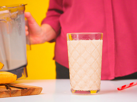 Mads Bos veganske svar på den klassiske vanilje milkshake. Den lækre og fede konsistens opnåes med de frosne bananer. Og husk endelig ikke at blende for længe, da du derved vil begynde at varme ingredienserne op, og din shake bliver for flydende. En milkshake og i dette tilfælde en planteshake skal jo drikkes kold og frisk.