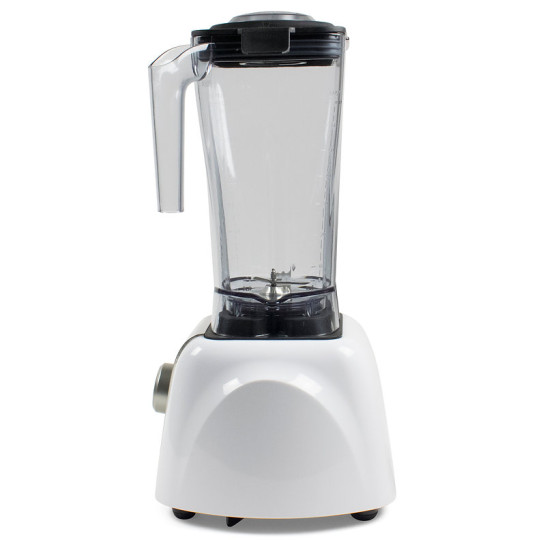 Der følger en 2 liters kande med, som er lavet af gennemsigtig tritan, der er 100% BPA-fri. Kanden er udstyret med en kniv i rustfrit stål af høj kvalitet, som sikrer effektive og cremede blends.