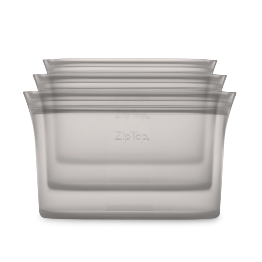 Du vil opleve at det opretstående design er pladsbesparende i skuffen, fryseren, køleskabet og tasken. Desuden er Zip Top fri for plast og er lavet af 100% platinum silikone.