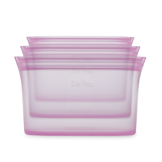 Zip Top beholdersættene i 100 % platinum silikone er lig med et farvel til den almindelige plastikpose og den popuære lynlåspose.