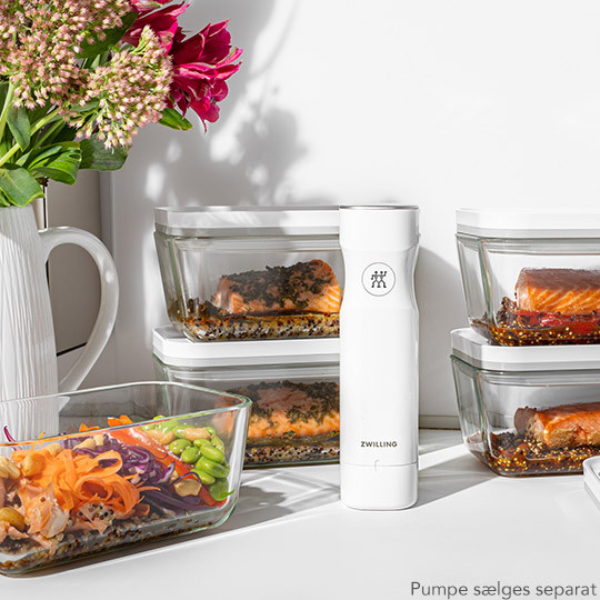 Med Zwilling Fresh & Save vakuumserien kan du undgå madspild, forberede mad længere tid i forvejen og holde din mad frisk i op til 5 gange så lang tid. Ved at opbevare maden under vakuum bibeholdes vitaminer og næringsstoffer samtidig i maden. Det eneste du skal bruge er vakuumpumpen til at vakuumere beholderen.