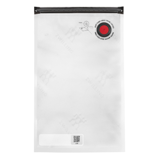 Med vakuumposerne fra Zwilling kan du undgå madspild, forberede mad på forhånd og holde din mad frisk i op til 5 gange længere tid. De geniale poser tåler både frost og mikroovn samt er ideelle tilbåde marinering af mad og sous vide madlavning. Desuden er vakuumposerne genanvendelige så du kan bruge dem igen og igen.